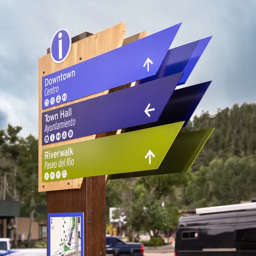 An effective wayfinding program considers every element that influences movement and visibility—including landscape design, lighting, interior architecture, color schemes, textures, and the human experience within the space.